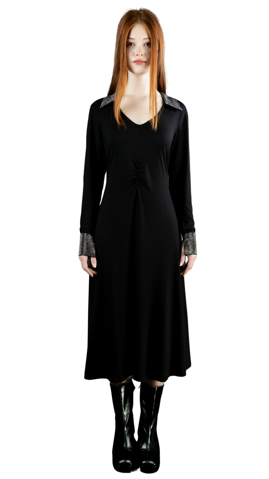 Grace NEU Jersey-Kleid mit Glitzerkragen / -bündchen Schwarz Nr. 436/2118