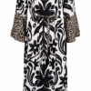 Tags: lässiges langes Kleid, mit "black&white"-Print, mit Langarm, mit Ornamenten, V-Ausschnitt